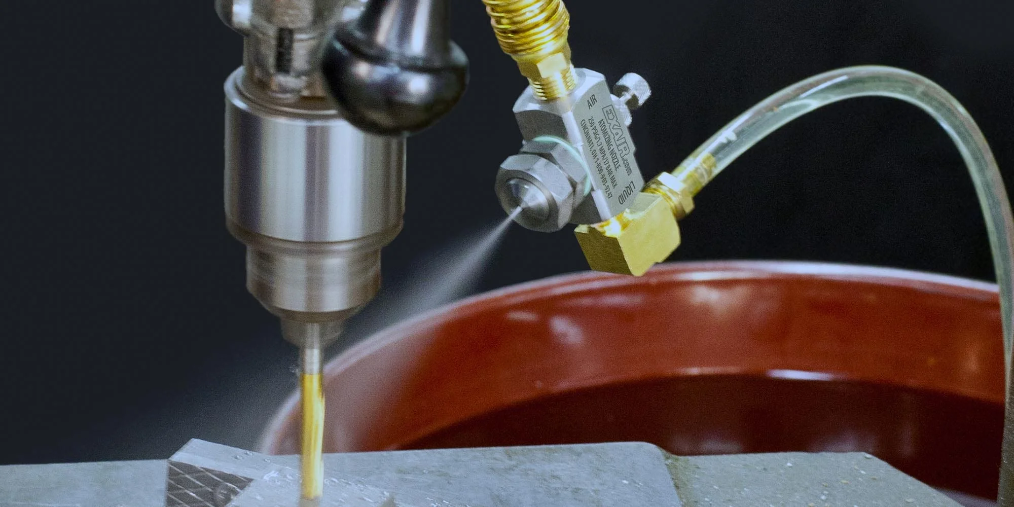 EXAIR atomizing nozzles produce fine mists for coating, cooling, moistening, and dust suppression. Internal mix, external mix, and siphon-fed designs handle liquids from water-thin to viscous. All stainless steel construction withstands temperatures up to 800°F. No drip options prevent waste when air is shut off.